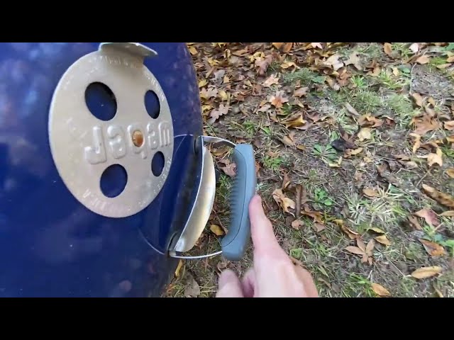 - The grill features a convenient hook on the inside of the lid, preventing the need to place the lid on the ground when checking on food.