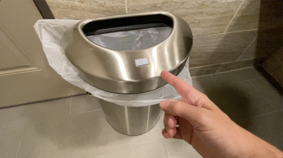 - It features a small hole inside the can where you can tuck the excess of the trash bag, keeping it out of sight.
